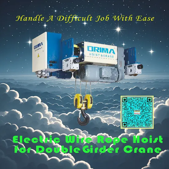 Working principle The wire rope hoist for double-girder crane is driven by a motor to drive the reducer. The reducer drives the drum to rotate, thus realizing the take-up and pay-off of the wire rope. When the wire rope is wound on the drum, the hook rises; when the wire rope is released from the drum, the hook descends. During the lifting and descending process, the brake can brake the drum at any time to ensure the safety of heavy objects.