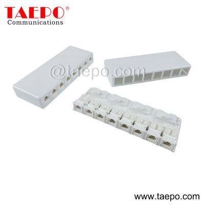 A CAT5E RJ45 8P8C UTP 8 port surface mount box is a type of networking equipment designed to house multiple network connections in a surface-mounted configuration.
