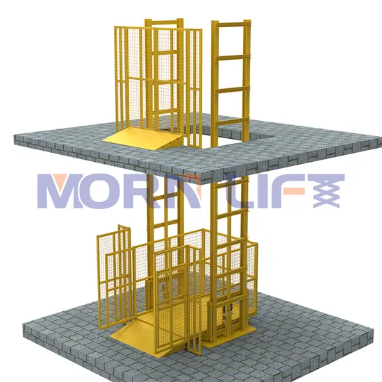 MORN electric small cargo lift hydraulic mini goods lift platform Used in indoor or outdoor workplaces of the buildings and warehouses, lifting goods or pallets among different vertical floors. Provide fast, efficient, convenient and safe access for goods to reach mezzanines, basements, and any levels in multi-storied buildings.