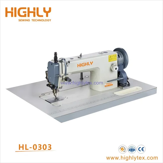 HIGHLY brand HL-0303 Top and Bottom Feed Heavy Duty Lockstitch Sewing Machine is for the expansion type sewing material and medium and thick material with large mobility, during the sewing process it can make the feeding amount at upper and lower level reach consistent. Moreover, the sewing thickness has remarkable climbing performance. By adopting large automatic lubricating hook to hook thread, it can save the time and improve working efficiency. It is used for thick material such as leather, artificial leather, canvas, car seat causion, and other thick clothing.