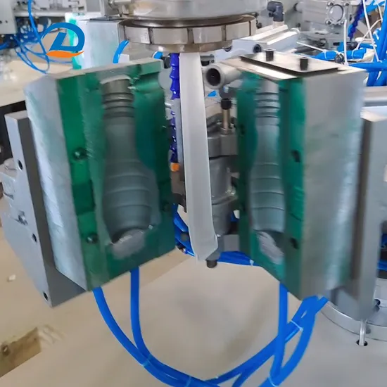 Africa automatic rotary extrusion blowing molding machine for ice lolly soft bottle Working principle : one step " extrusion-blow molding " forming. plastic blow molding machine It suitable for LDPE, HDPE, PP, PS raw material etc. plastic extruder adopt frequency conversion energy-saving motor to adjust the speed, not only can achieve the requirement of different product by the range of the adjustment speed, but also the extrusion parison is quite stable, ensure the unity of the product weight. The thermoplastic by the melting and plasticizing of the extruder through the extruder machine's head form the extrusion parison, and then the parison go into the mould, entering the compressed air, blow up the parison, cooling and forming, take the product out from the mould, knock out the nozzle, the circle is complete.