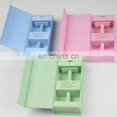 Products DescriptionDescription:Double Edge Blade RazorWeight92gMaterial:BrassPacking available:White box, gift boxPayment30% deposit,70% againest faxed document. T/T,Paypal....ShipmentDHL,FedEx,UPS....By air and sea are available Blue Pink OrangeCustomized serviceCustom product logo, logo can be designed on the metal parts of the blade head and razor bottom.Custom product packaging, MOQ 500, if the quantity is less than 500, please contact our sales to provide you with more solutions.Product packagingRecommend ProductsCompany Profile--Kinghood Commodity Co .,Ltd have 15 years manufacture experience.--We are the TOP 10 in the market for high-end men personal care products.--50% of personal care products sold on Amazon,ebay,Express, Tmall and other platforms are produced and provided by us.--We cooperate with hundreds of customer brands,included Truefitt&Hill,L'OREAL,BOOTS,P&G,Lancome,Chloe,Oriflame,May Kay,Shiseido etc.--Our operations cover more than 200 countries and regions around the world.--OME and ODM service is available.Why Choose UsFAQQ1:Are you a factory or trading company?A:Absolutely we are a factory with more than 12 years production experience.Q2:Can you customized my own brand or designs?A:We're the direct manufacture and it's available to customize your preferable design and brand & Logo.Just please provide your full requirement and documents to our sales, then they will give you the professional suggestions.Q3: Can you do OME?A:Yes,we can do OME products. It's no problem.Q4:May I ask for a free sample?A:We are glad to send you a free sample if we have the stock, but it is your turns to pay the courier fee.Q5:What is the minimum order quantity of your product?A:The MOQ of mirror is 3000pcs,For the razor 1000pcs.