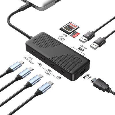 10-in-1 TYPE-C USB3.2 Gen2 intelligent docking station, aluminum alloy shell + cable_USB3.1 type c_OD4.5_Net line length: 30CM_ gray (aluminum alloy iron gray), integrated aluminum alloy, quickly export heat, more efficient heat dissipation, more stable transmission, exquisite and compact appearance, storage does not occupy space, easy to carry. Support 4K/60Hz HD screen projection, support PD3.0 fast charging protocol, support TF/SD dual card slot plug and play, support USB3.2 Gen2 maximum transmission rate 10Gbs, all USB interfaces use U disk, mobile hard disk, wireless mouse and other related USB storage devices for data transmission with computers and mobile phones;
