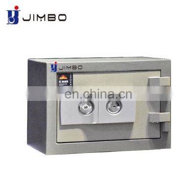 Products DescriptionFireproof safe*Product NameJIMBO hotel steel security money deposit key fireproof safe box*Brand NameJimbo*Product ModelH4 Series*SizeH320*W420*D420mmWeight48 kg*MateritalHigh quality cold rolled steel sheet Q235*Door Thickness22 mm*Body Thickness25 mm *LockElectronic Digital Lock*HandleBrushed solid steel handle*CertificateJIS, CE , RoSH , SGS , ISO 1182*Available colorWhite , Black , body and door can be in different colors*Packing5 layer standard export carton with thickened foam*SurfaceDurable electrostatic powder coating*Main productsFireproof safe, Bulglarproof safe, Home safe ,Vault door, Watch winder safe, Hotel safe box, Steel Lockers, Filing CabinetsWhy Choose Us?(1).We have an ISO 1182 fire protection certificate, and we have also tested a product fire test in the factory, and the product quality is very good, which is why our customers choose us.(2).If you need the safe box,we can provide safe's photos for you use.We build your brand,not our own!Please send us inquiry for discount!(3).Jimbo fireproof safe protect your most important documents and valuables for up to two hour at 1700˚F (927˚C).Fireproof For 2 Hour Up To 1700℃Factory fire product testingISO 1182:2020 Reaction to fire tests for productsInquire now and we offer free design and discountsRecommend ProductsCompany ProfileFoshan jimbosafe Co.,Ltd established in 2012, exporting our safe box to more than 118 Countries with over 10 years history . Located in Foshan,Guangdong, Jimbo owns 5,000m2 Modern Workshop, 50 Skilled workers,3 Reliable QC and 10 production machines and passed 4 certification (CE, ROHS, SGS, ISO). Through our experienced sales team, we finish 50,000,000.00+RMB turnover per year and keep growing.As Assessed Supplier by Alibaba, we hope can cooperate with you!Our TeamInquire now and we offer free design and discountsTestFAQProduction relatedIf you have any other questions, we would be more than happy to answer them for you. Please contact us below:Mrs. AnnEmail: annie@jimbosafe.com / Jessica@jimbosafe.com / sales01@jimbosafe.comMob & Wechat & WhatsAPP ::+861666567569Q: Do you provide samples?A: We can provide a sample with freight and handling charges at your expense.Q: How do you send your samples?A: We usually send via international couriers such as DHL, FedEx or UPS. We can also work with you if you have other alternative arrangements.Q: What is your lead time?A: Our production lead time is typically between 25 to 45 days from receiving payment, depending on chosen items, quantities and specific requirements. We can have off the shelf goods ready to be shipped in 5 to 10 days if there are available stock and no change request.Q: Is there any warranty offered for the product?A: A two-year Limited free-warranty is offered.Q: What are your payment terms?A: We can work with L/C or 30% deposit upon ordering and remaining balance prior to shipping of products. We can provide photos of finished goods and also accept on site final inspection.Inquire now and we offer free design and discounts