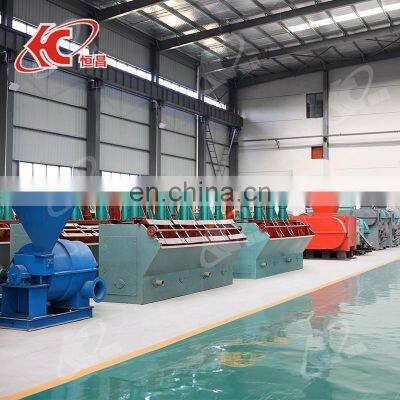 Product DescriptionHigh Efficient 1tph Gold Zinc Coal Mining Mineral Iron Copper Froth Flotation Cell Tank Machine With Factory PriceFlotation machine is also called flotation cell, which is the mineral separation equipment based on different physical and chemical properties of mineral particles, difference floating or chemical reaction to separate materials. The flotation machine has air suction, pulp suction and flotation functions, which can form self flotation circuit without any auxiliary equipment. It is horizontally configured, which is easy for process changes. The pulp has reasonable cycle, which can minimize the sand sediments.Product ApplicationMetal ore such as gold, silver, copper, Lead (Pb), Zinc (Zn), Tin, Nickel (Ni) and so on, non-metal mineral, raw body and materials of chemical industry..The flotation machine is mainly used for sorting non-ferrous metals such as copper, zinc, lead nickel and gold, and can also be used for rough selection and selection of ferrous and non-metal. The motor is driven by the motors V-belt drive to rotate the impeller, which generates centrifugal force to form a negative pressure On the one hand, it absorbs sufficient air to mix with the slurry. On the one hand, it mixes the slurry with the drug, and refines the foam to make the mineral bond foam Mineralized foam is formed on the slurry surface. Adjust the height of the shutter and control the liquid level so that the useful foam is scraped off by the scraper.Working PrincipleWhen the flotation machine works, the motor drives the impeller to revolve, so the centrifugal effect and negative pressure are produced. On one hand, ample air is absorbed and mixed with mineral slurry, on the other hand, the mixed mineral slurry is mingledwith additive, meanwhile, the foams are thinning, the mineral is bounded with foams, and floats up to the surface of mineral slurry and the mineralized foam is formed. The liquid surface can be adjusted with the height of adjustment flashboard, so that the useful foams are scraped with squeegee.ModelSF0.37SF0.7SF1.2SF2.8SF4Volume (m³)0.370.71.22.84Impeller diameter(mm)300350450550650Capacity (m³/min)0.2-0.40.3-0.90.6-1.21.5-3.50.5-4Impeller Speed(r/min)352400312268238Impeller motorModelY90L-4Y100L2-4Y132M2-6Y160L-6Y180L-6Power (Kw)1.535.51115Scraper motorModelY90S-4Y90L-4Power (Kw)1.11.51.Simple structure, strong agitation ability, and low energy consumption.2.The impeller is equipped with holey cylinder air alloter.3.The air scattering is uniform and the mixing effect of air and slurry is good.4.U-shaped tank, little sedimentation of sand.5.Solid particles can be fully suspended, high flotation index.6.Long service life of vulnerable parts.6 Types of Gold Ore:Gold exists in quartzite. Usually, quartz appears as small stones in large cracks in riverbeds or mountain slopes and has crystals in different colors such as white, yellow, pink, purple, gray, or black. The most common types of quartz with gold ore are rose quartz gold ore and rainbow gold ore. A high gold-quartz ore contains 25% gold by mass, and it occurs in areas where the bedrock is fractured by tectonic and volcanic activity.According to different physical and chemical properties of different types of gold ores, flotation separation utilizes various reagents to make the gold attached to the bubbles then scraping these gold particles from blades to get the concentrateAPPLICATION SCOPE:It is mainly used for the treatment of alluvial gold, as well as in combination with other types of mineral processing techniques.In addition to deal with gold processing, it can also be used for processing tungsten ore, tin ore, manganese ore, titanium ore,tantalum niobium ore, barite, Iron pyrite, antimony, chrome ore, etc.Customer Visits & Exhibition SouvenirsCompany ProfileHengchang headquarters is located in the industrial park in Gongyi City. It covers a total area of 150,000 square meters,including 100,000 square meters of standarized workshop. There are more than 200 sets of various large and medium-sized metal processing lathe, riveting machine, welding equipment and assembly equipment. We have more than 300 workers, including more than 20 middle and senior technicians. Hengchang is mainly focus on 4 series products: stone crusher machines, sand making equipment,powder grinding mills, mineral processing equipment and their spare parts. Every year, Hengchang can turn out 1,000 sets of crushers and10,000 tons of crusher parts.Our ServiceBefore-sale services:We guide customers to choose the best and applicable device; provide the advanced, energy-saving and practical technological processes, as well as we are responsible for the planning and design of the site.Sale services: Products must be inspected strictly before being sold; customers are invited to simulate and test machine on-the-spot and raise objections; in accordance with the agreements stipulated in the contract, we will arrange delivery.After-sale services: Our Company will send professional engineers to guide device installation, debug and train operators until customers are fully . Moreover, we will design and produce machines according to the special requirements of customers. Solemn Promise: The quality guarantee period of machines is one year except the wearing partsTips:The prices in the web only to be reference,according to raw material's price fluctuations; Specific price is subject to the negotiation.Packing &DeliveryPackaging Details:Normally the machines are taken apart before delivery and are packed by suitable packing ways, the packing ways are as below: Nude packing. Bundle packing. Grass rope packing. Water proof packing. Wooden pallets packing. Wooden box or carton box packing.Delivery Time:We will customize according to the actual needs of customers. Senior designers start to design the plan. After receiving the deposit, we will complete the delivery within 15 to 25working days.FAQQ:Why we believe in Gongyi Hengchang company? A: 1.More than