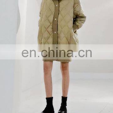 TWOTWINSTYLE Cotton Coat For Women V Neck Patchwork Bib Casual Korean Parkas Patchwork Argyle