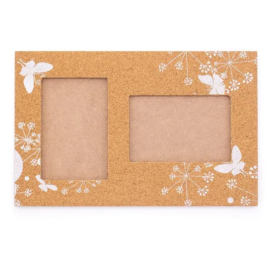 Cork wooden photo frame Details This is cork photo frame is a good display for your family picture. Small white butterfly and flower pattern in the front to add small details. Cork material is soft and durable Content Cork+Wood Outside size: 18.5X24.5CM - Inner size: 11.5x16.5cm Outside size: 17.5x27.5CM - Inner size: 11.5x7.5cm - Inner size: 7.5x11.5cm