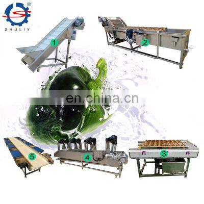 Air bubble vegetable washing machine fruit and vegetable processing lineProduct Description This cleaning line can clean all kinds of vegetables and fruits without causing damage to the raw materials.The use of hoist, bubble washing machine, impurities removing machine, air dryer and picking table can complete the continuous cleaning of large quantities of fruits and vegetables. ModelPowerWeightSizeCapacityHoist0.75kw150kg1500*800*1600mm500-1000kg/hBubble washing machine6.8kw600 kg4000*1200*2400 mm1000 kg/hHair roller remover2.25 kw420 kg6000*1200*2400 mm1000 kg/hAir drying machine9.75 kw800 kg6000*1200*2400 mm1000 kg/hPicking table0.75kw200kg4000*1200*900mm1000kg/h Packaging & Shipping Our ServicePre-sales services* any concerns of our machine by email/phone will be replied ASAP within 24 hours* according to the customers’ requirements and circumstance to make the best design * cost/benefit analysis* to support factory layoutIn the sale of services* we are in charge of installing,debugging and training* technical guidance of frequently asked questionsAfter-sales service* one year guarantee for whole machine except of quick-wear part* 24 hours technical support by email/phone* calling, network or door-to-door service* use friendly English software, user manual and detailed Videos/CDFAQ1. MOQ(Minimum Order Quantity) One set is welcome, and mix products for order are welcome. 2. Delivery Time Depending on your quantity, for goods we have in stock. Delivery takes few days to comply with your request to replace the plug or other configurations. For regular order, by ocean shipping takes 20-40 days. For small machines, express delivery for 3-8 days. 3. Deviation There might be sightly difference in color, because of the computer monitor settings . With the difference in the measurement method, please allow 1-3cm in size deviation. 4. Package Standard export wooden case or other packages depending on products packaging weight is subject to the actual pack. 5. Service welcome your compliments / complaints and suggestions. Any inquiries or complaints will be responsed within 24 hoursCompany InformationZhengzhou Shuliy Machinery Co., Ltd was found in 2000. We not only provide customers with cost-effective products, but also provide first-class service support and solutions.Shuliy has passed SGS, ISO, TUV, CE, BV and other certifications. Our products have been exported to countries and regions such as Arabia, India, Russia, Central Asia, Africa and Mongolia. Perfect after-sales service system allows you to worry-free. Contact me