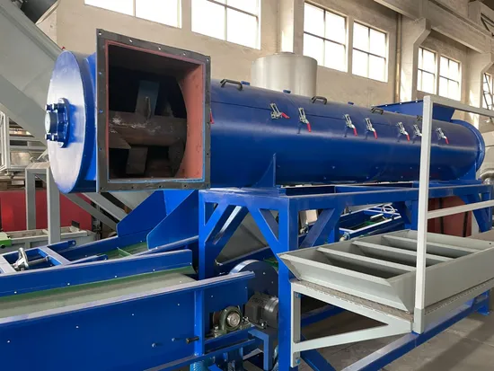 Complete PE PP Film Crushing Friction Hot Water Floating Washing Line 1. The whole line is flowing is : conveyer belt - crusher - Screw loader - floating - screw loader - frication machine - Screw loader - dewater - screw loader - hot pipe dryer.