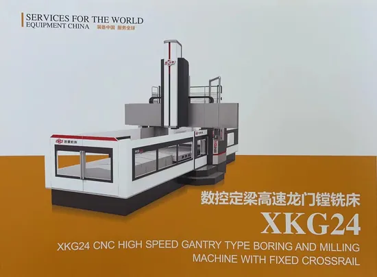 XKG24 series adopts one fixed crossrail. The machine is widely applied in industries such as aerospace, railway, transportation, molding, machining and so on. A ram type boring and milling head is mounted on crossrail. 3 feeding axis and one auxiliary axis (table X axis; boring and milling spindle-Y axis; ram-Z axis).