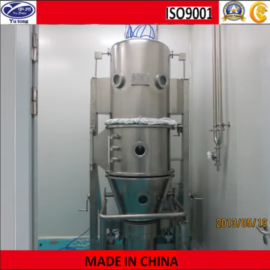The fluidized drying granulator can be used to make tables, instant herbal medicine and capsule in pharmaceutical industry, cocoa, coffee, milk powder, fruit granules and flavoring in food industry, and agricultural pesticide, feedstuff, fertilizers, pigments and dyestuff in other industries. It is also suitable for drying of wet powder materials or wet particles.