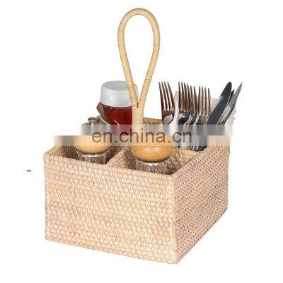 Hot Woven Whitewash Rattan Utensil Caddy Basket Boho Decor High Quality Bottle Holder Wholesale Vietnam Supplier
