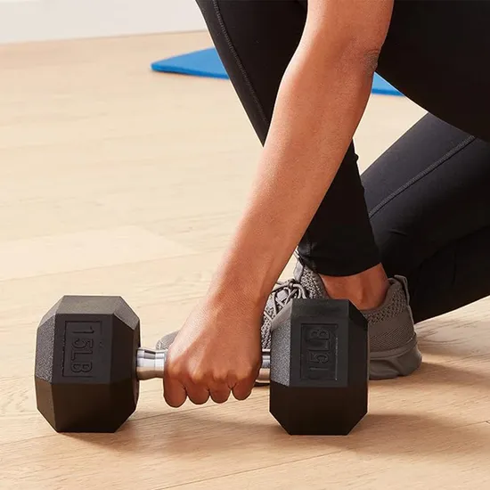 El paquete incluye: 2 mancuernas de goma hexagonales de 15 lb