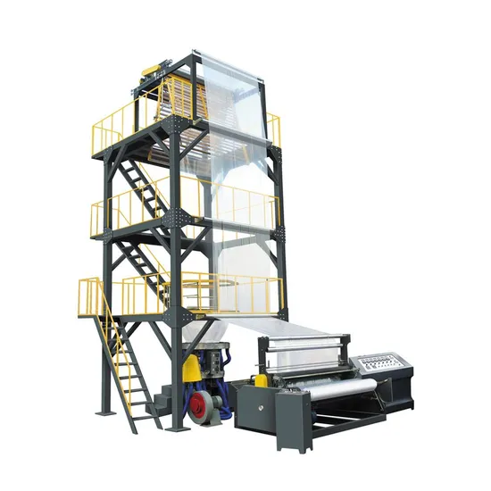 This machine is applied to produce HDPE,LDPE and LLDPE plastic film.It is widely used for packing food,garments,daily necessities,and other agricuture and industry use.It is equipped with three axis transmission hard surface gear reducer,traction frequency adjustment,independent torque motor rewinder,centrifugal blower,and air compressor(Rotary die head part can be chosen with extra charge)