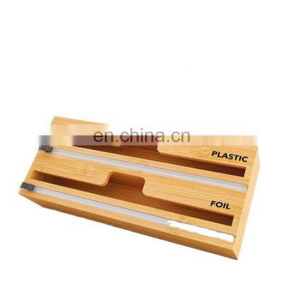 Natural Eco Friendly Bamboo Cling 2 In 1 Plastic And Aluminum Foil Wrap Dispenser Home Storage Organization Kitchen & Tabletop