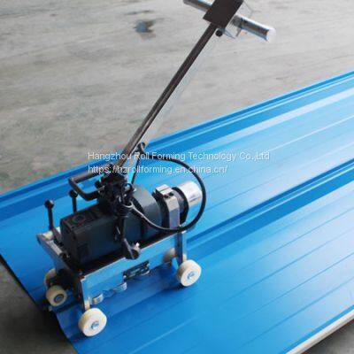 This machine is assistant equipment for roof roll forming machine. It is used to seam the roof panels. It is featured by lightweight, small size, easy operation, and maintenance, especially considering the narrow edge of the starting point.