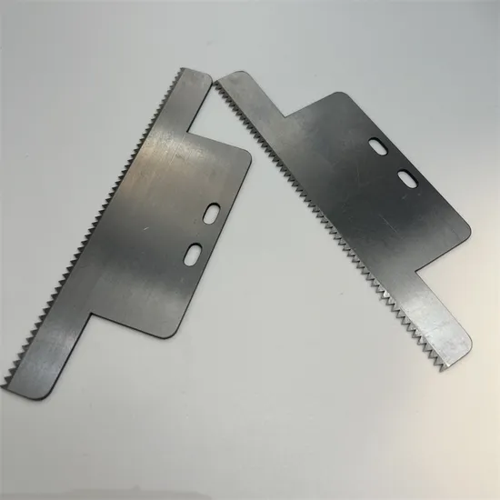 Product Description Packaging Machinery Serrated Cutting Blades Box sealing machine blade is mainly used for carton sealing and packaging. It can be used in a single box operation or with the assembly line. It can also be used in a packaging line with the carton forming and unpacking machine, packing machine, labeling machine, baling machine, pallet stacking machine, conveyor and other equipment. Sealing machine for card agent products are mainly divided into: automatic cover sealing machine series, steam adjustment sealing machine series, automatic sealing machine series, corner sealing machine series, corner sealing machine, I-type sealing box and so on.