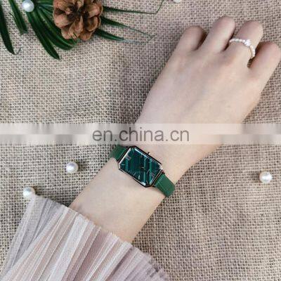 SpecificationCustomized ladies watch hot selling small green dial square quartz watches waterproof wrist watch women luxury brandCaseMaterialStainless SteelSize28mmWaterproof3 ATMGlassSapphire crystalStrapMaterialLeatherWidth10 mmBuckleSquare BuckleDialMaterialCopperMovementModelGL20 QuartzDetails ImagesTransaction Flow1stDiscussion & Confirmation of Design2ndConfirmation of Down Payment3rdSample / Mass Production4thConfirmation of Balance Payment5thDeliveryPayment Term & Lead TimePayment TermSample100% pay before productionBulk30% pay before production, 70% pay before shipmentPayment MethodAlibaba Trade AssuranceLead TimeSampleWith Your Own LogoIf Cases in Stock30 DaysWithout LogoIf Cases in Stock3 DaysWith Your Own LogoCustomized Cases50 - 60 DaysBulkWith Your Own LogoIf Cases in Stock40 - 50 DaysWith Your Own LogoIf Cases Out of Stock50 - 60 DaysServiceOEM / ODM AvailablePacking & DeliveryFree Paper BoxA watch packed by a plastic bag, 10pcs watches packed by a paper box. Free Foam BoxA watch packed by a plastic bag, 10pcs watches packed by a foam box.PU Leather Gift BoxWe understand customers request customized gift boxes for the customized watches, as a manufacturer, we are able to offer one station service. MOQ: 500PCSIn addtion, if you have your own box supplier in China, the boxes can be sent to us for packing for free.Company ProfileHK Watch FairAs an expereienced watch manufacturer in China, Dualtime attends HK Watch Fair every time, to exhibit new designs and hot sellers, which have caught visitors eyes and help it develop customers from all over the world. Dualtime Case WorkshopDualtime focuses on high end watch, attaches great importance of quality, that's why it has self own case manufacturer, it can control the lead time and quality easily.Dualtime Dust Free Assembly WorkshopDualtime gathers some sophisticated assembly staffs, which specializes in assembling watch with complicated movements, they need to keep all watches working normally.Dualtime Quality Control WorkshopDualtime gives priority to the quality, it is vital element for the transaction. Therefore, Dualtime has different quality control teams for the incoming material, semi-finished watch and finished watch. Quality is life.Dualtime Quality Control Machines(Some of them have been uploaded as following)Waterproof Test MachineThis machine is for 1-30ATM Waterproof, to find out which ones cannot reach waterproof request level.Strap Durability Test MachineThis machine is for durability of strap, to see the straps can be folded for how many times and durability level.Shock Test MachineThis machine is for shock test, to assume that whether the hands will be loosed during transportation.Dualtime Clients Meeting Dualtime enjoys high reputation in watch field, a plenty of customers from different countries have come to visit Dualtime and their watches with joy. It is easier for us to understand each other and discuss business.If you have any interests, welcome to visit us!Dualtime Responsibility & PhilosophyDualtime has mature working systems, with sophiticated engineers, excellent designers and professional international salesman. We follow up the trend of watch fashion closely, create new and stylish designs every month. In addition, if customers have any ideas for their own watch, we can get some inspiration from their ideas and design what they need. Absolutely, design is important, but the quality is the most important, we have never made any compromising on quality, that's why we are able to win and keep long term cooperation with customers from America, Canada, Swiss, Japan, Netherlands, United Kingdom, Spain, Belgium, France, Singapore, Russia and so on.Dualtime always puts customers requirements at priority.Hot Sell: Please Click the picture to Get More Details