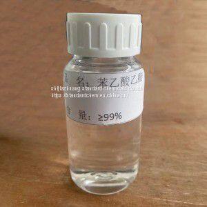 Ethyl Phenyl Acetate Colorless or nearly colorless transparent liquid with strong and sweet honey aroma. Insoluble in water, miscible with ethanol, ether, benzene and chloroform. It is used as a synthetic perfume to prepare all kinds of flower flavor daily flavors. It is used as an auxiliary agent for solvents and spices, as well as in organic synthesis, pesticides and pharmaceutical intermediates.