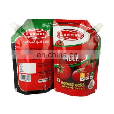 Product DescriptionSpecificationitemStand up squeeze ketchup liquid packaging pouch laminated aluminum foil plastic spout packaging of tomato saucePlace of OriginChinaBrand NameWeiyiModel Numberliquid pouch with spoutSurface HandlingGravure printingIndustrial UseSauce packaging spout pouchUseSauce, dishwasher detergent, body wash, face wash, juice, milk, jelly,etcMaterial StructurePET/VMPET/PEBag TypeStand Up Spout PouchSealing & HandleHeat SealCustom OrderAcceptFeatureMoisture ProofPlastic TypePEProduct namecustom pouch with spoutUsagePackagePrintingGravnre PrintingSizeCustomized SizeAdvantageHigh BarrierColorCustomized ColorStyleFashionableThickness50-200micronsTypeTop SpoutSampleAvaialblePacking & DeliveryPacked in a poly bag and 15 kg/carton or customized packingCompany ProfileShantou Weiyi Packaging Co., Ltd. is located in Shantou County in the south of Guangdong Province, China, specialized in flexible packaging. We have been an exporter in this particular line for many years.As an advanced manufacturer of flexible packaging, we are working under a strict quality and service system all the time. Our factory now possesses multicolor-printing and flexible packaging production lines, including nine/eight/seven color photogravure printing machines, dry laminators, extruders, slitters, and bag sealing machines. We are devoted to the printing of BOPP/CPP/PE/NY/PET/MPET/MCPP/AL films heat shrink film and others. We are also committed to making various types of multicolor-printed packing bags, vertical bags with zippers, zipper bags, frozen bags, high temperature retort pouches, vacuum bags, packing bags of detergents and balloons, and other related products. Besides, our company can provide you with computerized designs, as well as advertising plans.Our principle is "credit prior, customers first; providing excellent service, and giving gorgeous colors". We firmly believe that, with the spirit of consistent pursuit of technological development and good quality, we shall provide you with exquisite packaging to achieve full customer satisfaction with our utmost.Business scopes: coffee bag, complex film, vacuum packaging, retort pouches, cold sealed film, candy packaging, ice cream packaging, and biscuit packaging.FAQ1. who are we?We are based in Guangdong, China, start from 2013,sell to North America(30.00%),Eastern Europe(15.00%),Southeast Asia(15.00%),Western Europe(8.00%),Eastern Asia(5.00%),Northern Europe(5.00%),Domestic Market(5.00%),Oceania(3.00%),Mid East(3.00%),Southern Europe(3.00%),South America(2.00%),Africa(2.00%),Central America(2.00%),South Asia(2.00%). There are total about 51-100 people in our office.2. how can we guarantee quality?Always a pre-production sample before mass production;Always final Inspection before shipment;3.what can you buy from us?Food Packaging Bag4. why should you buy from us not from other suppliers?null5. what services can we provide?Accepted Delivery Terms: FOB,CFR,CIF,EXW,Express Delivery;Accepted Payment Currency:USD,EUR,JPY,CAD,AUD,HKD,GBP,CNY,CHF;Accepted Payment Type: T/T,L/C,MoneyGram,PayPal,Western Union,Cash,Escrow;Language Spoken:English,Chinese