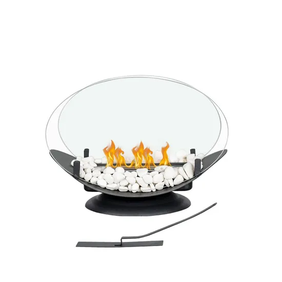 Cozy Home Decoration Ethanol Fireplace Ventless and Portable: You can move it around your home indoor or outdoor. It is also a perfect replacement for traditional wood log or gas firepalces. Easy to assemble: It's very simple to put it up, just pour ethanol in and light it up(ethanol is not included in this product ), the white stones are included, as decoration you can replace them with other stone or crystal as you like. Environmental friendly: it's burn with simple ethanol ( 95% concentration is recommended) , no smoke or ash would produce. Excellent design: The simple transparent glass design allows you to see the warm flame, and the black metal base is elegant and generous, which can seamlessly blend with any environment. Small fireplace can be used as a candle to increase the romantic atmosphere, but it is not as hot as a large fireplace and can be used as a small hand warmer. Key attributes
