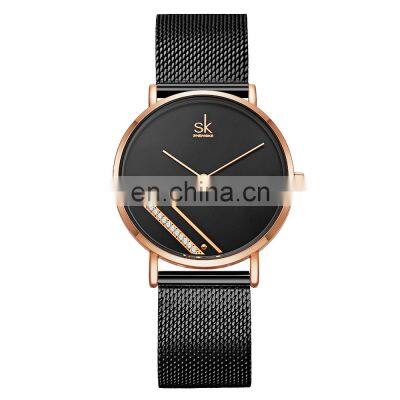 SHENGKE Elegant Lady Wristwatch Delicate Model Stainless Steel Milanese Mesh Band Quartz Movement K0106LModel Number K0106LBrand SHENGKE (SK)Style Classic Women's WatchMovementJapan Quartz (PC20)Case Material AlloyDiameter /Thickness36.0MM/6.5MMBand MaterialSteel Mesh BandBand Width18.0MMWaterproof3 ATMBattery Life20 Months 1. What's your MOQ? Can I mix styles and colors?A: Take our brand logo watches for wholesale is no MOQ limited , but if customized your logo (OEM ), the MOQ is :Alloy case watch 300pcs/style,can mix 2~3 colors ,stainless steel case watch 500pcs/per style .can mix 3~5 colors 2. Can we print our own logo?A: Yes,we can print your logo or design on the band, dial, buckle, back, case and other place, usually the color of the logo is one color.3.What about the warranty?A: 12 months movement warranty, and we are very confident with our products, and we will pack it very well, so usually you will receive your goods in good condition. But to avoid any subsequent trouble regarding quality issue, we suggest you check the watches once you receive them, and let us know if there is any damaged ones, so that we can deal with it accordingly.4.Do you offer Drop shipping (Blind shipping )?Yes , we offer Drop shipping/Blind shipping,we haven enough experience in drop shipping ,every day we have many watches to send out many countries for drop shipping.5. Do you do custom watch boxes?Yes, we do custom watch boxes. We can follow your requirement to make the boxes ,or you can select our boxes with your logo.6. What movement do you usually use in your watches?We usually use Japanese movement ,Swiss movement, and Chinese movement, for example Seiko,Citizen,Miyota,Ronda ,Kingstar we use most.7.What is your packaging?1.Not over 5 pcs order ,each watch will be put into a bubble bag then packaging well into a safe white bag(as below picture)2.Over 20 pcs order ,each watch will be put into a opp bag, then put into a bubble bag, after that all total put into a white box.(as below picture)For OEM/ ODM Products packaging:Normal packaging 1.Each piece will be put into a poly bag;2.20 pieces into a white box;3.10 white boxes into a 39*30*33cm carton; Special packaging: As per your request. Note: Only Normal packaging service is free.