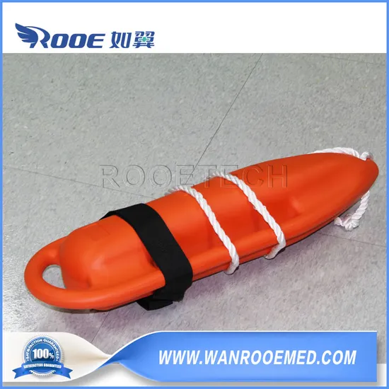 The rescue buoy is made of HDPE, and is buoyant enough to support the full weight of a rescuer and several victims. The rescue buoy is connect by a rope to a strap the rescuer wear.
