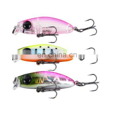 Product DescriptionLength:40mm Weight:2.5g Action : slowly sinking then stop Dive : 0.5m Lifelike Design: Features natural fish profile, realistic scale pattern - external etched scales , 3D lifelike eyes, together with erratic side-to-side action draw predators' attention, convince fish to strike Cupped Mouth: The popper baits are crafted with a wide concave mouth, create a much deeper gurgling sound and a more aggressive popping action, perfectly mimic a struggling baitfish , help trigger more bites Metal Ball Inside:With steel ball inside,Control barycenter easily,cast far.Noise model design,make fishing lures more easily to be sensed. Premium Treble Hooks: The wide-gap round bend treble hooks with ultra-sharp conical points that bite deep and hold hard, allow for quicker penetration and rock solid hooksets on any bass that bitesPacking & Deliverytle goes here.Packing:We can do any package as your requirement.Delivery time:5-7 days in stock,30-45 days for OEM.Shipping:We can send out production by sea,by air,by express company.We can provide express service.