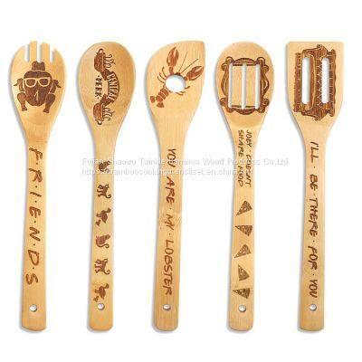 Bamboo cooking utensil set engraved kitchen spatula burn Wholesale