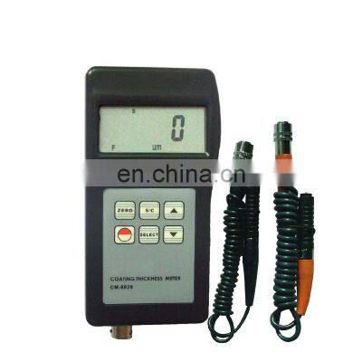 Product DescriptionFeatures* Two principles: Magnetic Induction and Eddy Current. * Two measurement mode: Single and Continuous. * Metric/imperial system selectable.* Manual or automatic power off.* Automatic memory of calibration value, and automatic recognize the substrate.* Operation process have buzzing reminder.* Integral Type have better stability and repeatability. * Separate Type can provide several types of probes, measure can be more flexibility. * Use RS-232 data output to connect with PC.* Provide Bluetooth data output choice.ApplicationsCoating thickness gauge is a kind of portable measuring instrument, can take fast, intact, precise measurement of coating thickness. It can not only be used in engine-ering field, laboratories, but also meet the demand of multiple measuring by using different probes. It is used widely in manufacturing, metal processing industry, chemical industry, commodity inspection field, etc. As an essential instrument in material protection industry.Technical ParametersSpecificationRange0~1250µm / 0~50milResolution0.1µm / 1µmAccuracy±1~3%n or ±2.5µmMin. Radius WorkpieceF Type: convex 1.5 mm / concave 25 mm NF Type:convex 3 mm / concave 50 mmMin. Measuring Area6 mmMin. Sample Thickness0.3 mmMetric / ImperialConvertibleBattery IndicatorLow Battery IndicatorAutomatic Power OffyesTemperature0~50°CRS-232C Data Cable with SoftwareoptionalBluetooth Data Adapter with SoftwareoptionalCompany ProfileDalian Taijia Technology Co.,Ltd is a high technology company which specializes in supplying and supporting of ultrasonic measurement equipment. prime products include ultrasonic transit-time flow meter, ultrasonic level meter, ultrasonic thickness meter etc. Our products are widely used in water supply and drainage water, petroleum and chemicals, food and pharmaceutical.We have sold product in more than 30 countries, such as America. Italy. India. Korea. Germany. Canada. Australia etc.We thank you for visiting our Web Site and look forward to the opportunity of being of service to you.Related productsAbout UsTrade Terms1. 18 Month's Warranty.2. Delivery time:3-7 working days after payments received3. MOQ:1 set.4. Service express company:TNT/DHL/FedEX.5. We accept T/T, Western Union, PayPal & Secure Payment.