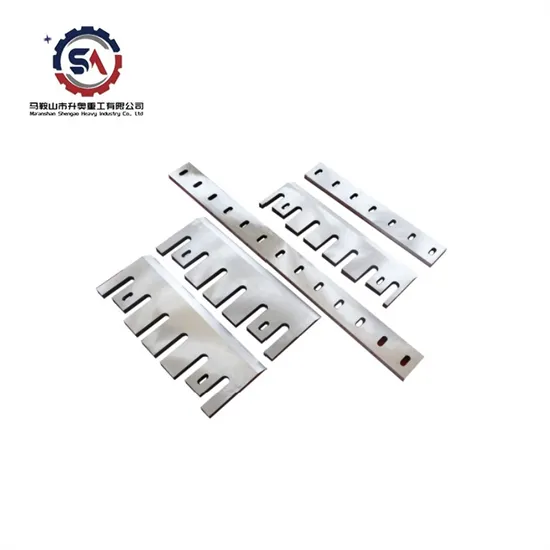 Wood chipper blades special for preparing wood chips, which is suitable for paper making enterprises, particle board enterprises, fiber board enterprises and wood chips supply base. It can cut logs, small diameter wood, etc. into wood chips with uniform length, flat cut and even thickness, and it can also cut laminations and plates.