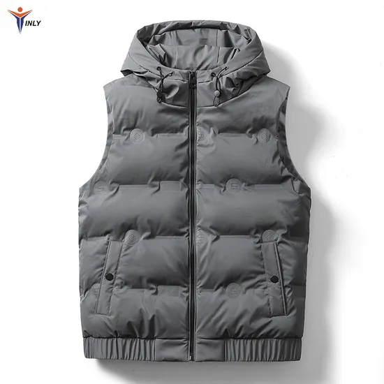 Custom Logo Men's Winter Puffer Vest Plus Size Quilted Warm Sleeveless Hooded Jacket Coat