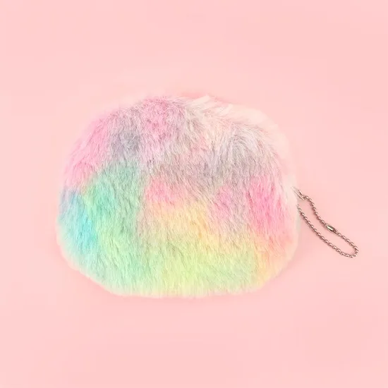Product Description Mini Plush round Zipper Velvet Coin Purse with Keychain for Kids Girls' Key Wallet Accessory