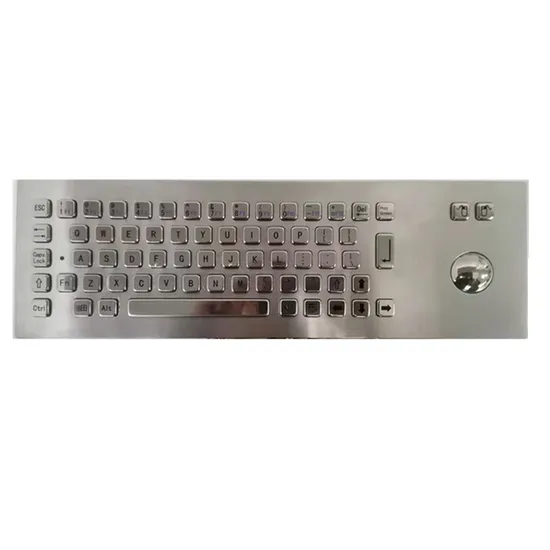 Outstanding Features: 67 keys stainless steel panel mounting keyboard with trackball Support OS: Windows 95/98/NT/ME/2000/2003/XP/Vista, Linux and Unix Customized layout available Lettering by etching and inking, or laser technology Carbon-on-Gold key switch technology (silicon gel) Mechanical/ Optical trackball optional Waterproof and dustproof Very rugged vandal proof design Can be cleaned with soapy water, disinfectant or other cleaning agents