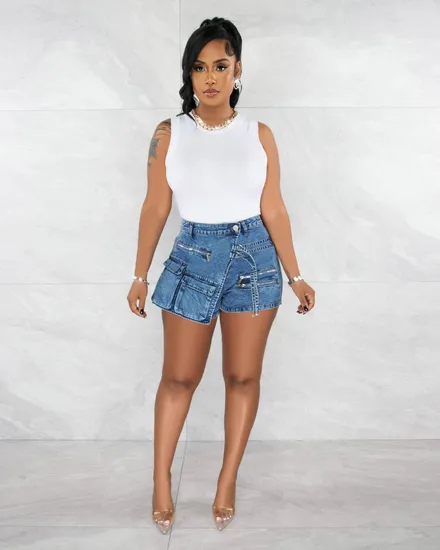 | Name | L412 Stretch Denim Cargo Zippered Denim Shorts with Multi-Pocket |
