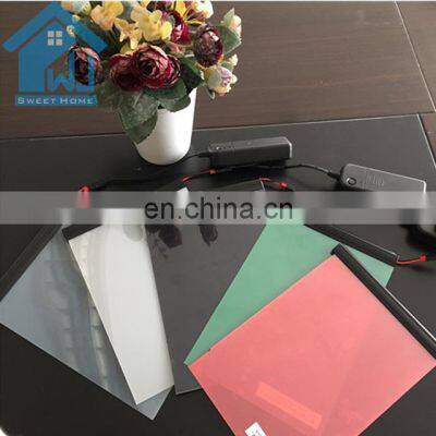 Product Description Smart film, also known as PDLC film, electronic film,smart glass film,smart film switchable,pdlc smart film and so on, is a kind of product based on membrane technology. It mixes rod-like polymer liquid crystal with prepolymer and adheres to transparentconductive substrates, so that it has the characteristics of liquid and crystal as well as remarkable photoelectriccharacteristics. Without electric field, its molecular disorder arrangement is in an opaque state. Under the action of electric field, itsmolecules are arranged orderly along the direction of electric field, making it transparent. By controlling the electric field, itcan make the transition between transparent and opaque states.When power on , the smart film turns to clear and when power off , the smart film turns frosted .SpecificationName:Privacy Glass FilmThickness0.35mmColormilky white , grey ,blue ,green ,pinkCotrollerremote control ,switch control and APP Power offfrostedPower onclearProjectPacking & DeliveryCompany ProfileWe are the factory for smart film , we can provide very fast delivery time about 3 -7 days .any inquiry , pls contact with me FAQQAre you factory?AYes.welcome to visit our factory.QHow can I get your smart film quotation?APlease tell us the size, color, quantities, whether need to further process and other detailed requirements etc. QWhat is the transportation?ASmall suggest to send by Courier. If large amount,by shipping. You can also use air freight.QCan you send me some samples to check your quality?A Sure,you can order directly or contact our staff.All the sample cost will be refunded after you place the appropriate order.QWhat if you can't stick the film?A 1. We can properly provide samples for you to try first.2. We can provide videos of the whole process for your reference.3. Our professional technicians will answer your questions online.