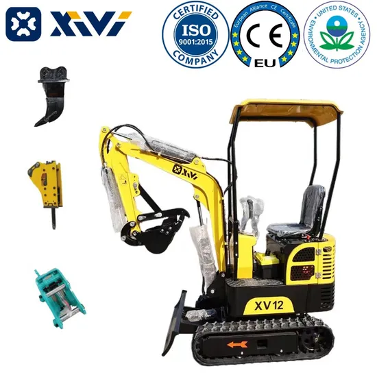 The XV12 Mini Excavator, a compact powerhouse with advanced hydraulic pilot controls and a comfortable operator's seat.
