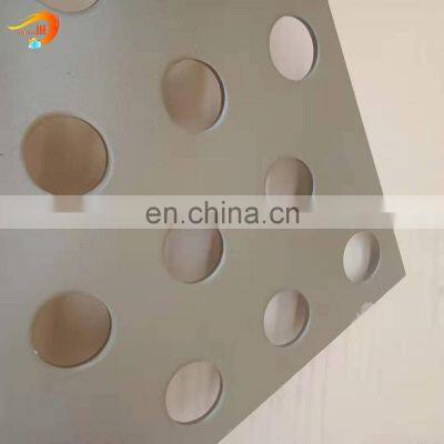 Decorative Perforated Metal Mesh Decorative perforated metal with versatility, aesthetic has a good popularity in buildings. We also accept other custom sizes. Decorative perforated metal has a wide application, such as making cabinets, backgrounds, walls, baskets and furniture. Decorative perforated metal is a sheet or coil of material with all kinds of hole shapes. Product Introduction SpecificationMaterialPlain steel, mild carbon steel, aluminum, stainless steel (302, 304, 304L, 316, 316L), brass, copper.Open Area35% – 68%.Surface TreatmentGalvanized, PE/PVC coated and powder coating.Thickness0.2–25 mm.Hole PatternsRound hole, square hole, slotted hole, hexagonal hole and decorative hole.Hole Diameter0.2–100 mm.PackingCoiled plate - in water-proof plastic bags then in wood pallets.Flat plate - in plastic film then in wood pallets. FEATUREVentilation, light and air penetration and anti-sand property.High strength and security.Perfect anti-corrosion property and rust resistance.Aesthetic appearance. Various choices in opening sizes/areas, gauges and materials, hole shapes/patterns.Wide application for architectural and decorative aspects.Low maintenance.Easy installation. Types of Decorative Perforated Metal Mesh Product Name Decorative hole perforated metal meshMaterial Stainless steel, aluminum, cooper, plain steel, pre-galvanized steel, etc.Thickness 11 gauge – 24 gauge.Width 36" – 48".Length 24" – 120" Product Name Hexagonal Hole Perforated Metal MeshMaterial Carbon steel, aluminum, stainless steel and pre-galvanized steel.Thickness 14 gauge – 22 gauge.Hole Size 0.25" – 0.5".Hole Centres 0.2813" – 0.5625".Hole Patterns Staggered row.Open Area 35% – 80%.Width 25" – 48".Length 24" – 120". Product Name Round Hole Perforated Metal MeshMaterial Mild carbon steel, stainless steel and aluminum.Surface Treatment Electric galvanized, hot dipped galvanized, PVC coated and oxidation treatment.Hole Size 0.027" – 1.0".Hole Centres 0.05" – 1.25".Hole Pattern Staggered and straight row.Sheet Width 24" – 60".Sheet Length 24" – 144". Product Name Slotted Hole Perforated Meatl MeshMaterial Plain steel and aluminum.Surface Treatment Electric galvanized, hot dipped galvanized, PVC coated, and oxidation treatment.Thickness 14 gauge – 22 gauge.Hole Pattern Side staggered and straight row.Slot Width 0.125" – 0.2".Slot Length 0.1" – 0.75".Slot Shape Round end and square end.Slot Side Bar 0.125" – 0.25".Slot End Bar 0.125" – 0.25". Product Name Square Hole Expanded Metal Mesh Material Carbon steel, stainless steel, hot or electro galvanized steel and aluminum.Hole size 0.2" – 0.75".Hole Centres 0.5" – 1"Hole Pattern Staggered and straight row.Open Area 11% – 56%.Width 36" to 48".Length 24" to 120". Application Decorative perforated metal panels have many applications.*Appliances - dish washer strainers, microwave screens, dryer and washer drums, cylinders for gas burners, water heaters and heat pumps, flame arrestors*Architectural - stairs, ceilings, walls, floors, shades, decorative, sound absorption*Audio Equipment - speaker grills*Food Processing - trays, pans, strainers, extruders*Furniture - benches, chairs, shelves*Industrial equipment - conveyors, dryers, heat dispersion, guards, diffusers, EMI/RFI protection Decorative Perorsted metal Panels Process Packing & ShippingThe package of the decorative perforated metal panels has many kinds as your requirements.1.On pallet with waterproof cloth2.In wooden case with waterproof paper3.In carton box4.In roll with woven bag5.In bulk or In bundle Related Products Decorative Chanmail CurtainDecorative Metal Coil Curtain Our Certification Our Service1. Small sample is free.2. According to the different customer need to customize logo.3. According to the color of the customers like to customize.4. We have full stock, and can deliver within short time.5. Good Quality + Factory Price + Quick Response + Reliable Service, is what we are trying best to offer you.We have rich experience of design, manufacture and sell solar water heater, we cherish every order from our honor. Why Choose Us1. Professional Over 20 years' experience in wire mesh industry and export more than 70 counries. Dongjie Wire Mesh is the real professional manufacturer.2. Product Quality The quality of product is the key of the survival of enterprise . Dongjie Wire Mesh is a ISO9001:2008 certificated manufacturer.3. Reasonable Price We'll exactly control each producing process to reduce cost for our customers. After clients receiving the quotation, we 'll show you the rational priceand the difference between our products and other suppliers' products.4. Delivery Time We'll make a produciton plan before producinig, and the sales will regularly inform the production schedule and process to the customer.5. Communication English is the basic language and other language also can be understood. All customer's e-mail will replied within 2 hours at working hours and must be replied within 12 hours at non-working hours.6. Customized Personalized, professional service - We can provide different programs according to customer's requirement, thus make customers choose the best and appropriste one. Our Company Anping Dongjie Wire Mesh Product Co., Ltd is a premier manufacturer and supplier of wire mesh products located in Anping Town, the famous Wire Mesh Land of China. We have engaged in expanded metal mesh, perforated metal mesh, decorative wire mesh and stamping parts for decades and have accumulated rich experiences in this field. Contact Us