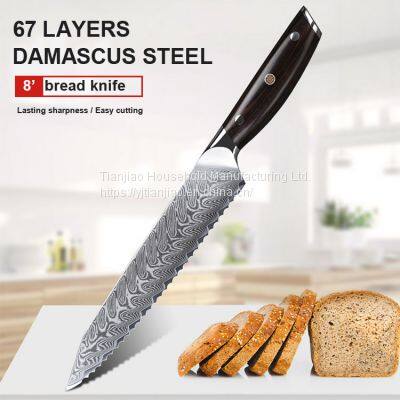 8 inch Bread Knife Damascus Stainless Steel Professional Grade Bread Kitchen Knife Serrated Edge Cake Crusty Bread Knife$22.00 - $26.00 / piece300.0 pieces