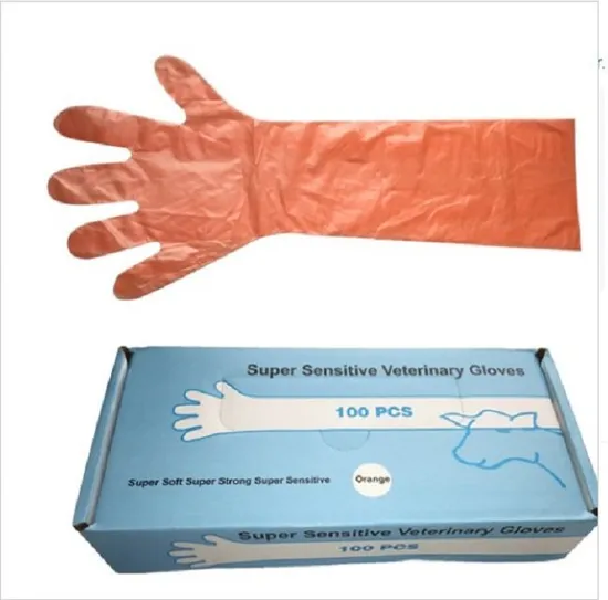 Veterinary gloves are used by veterinarians for examinations, especially for cattle, horses, sheep, bovine, equine, etc surgery, or just general animal handling. Because of the variety of things a vet is required to do, there are a variety of different types of veterinary gloves, offering widely different protection. It is made of quality polyethylene, about 85-93cm in length, 8g/pc, and a thickness average of 27 microns, with eva material can make the glove feel soft but tough, which become a more and more popular glove for animal insemination.