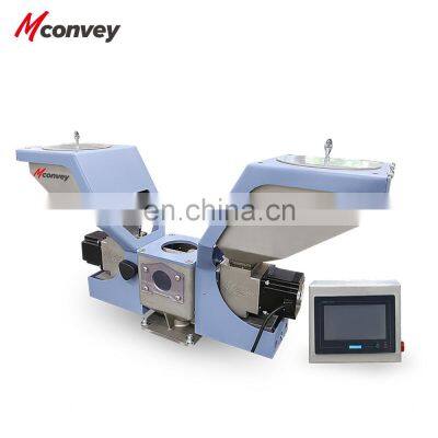 Features:* PLC control, touch screen display, and easy to operate and understand;* Modular assembly structure, convenient disassembly and assembly, easy to clean and exchange;* The standard base of the single-color doser is equipped with a hopper magnet to prevent damage to the screw rod of the molding machine;* The main hopper is the standard equipment of thedouble-color doser, and optional for the single-color doser;* Optional stirrer to break up additives with poor fluidity;* It meets the external signal input requirements, and records the current operation mode, and it is not affected by power failure, operating in the same mode after power restoration;* There are three feeding modes: gravimetric mode (this mode is of higher accuracy), volume mode, fixed ratio mode;* With weighing function, automatic calibration, and automatic monitoring of the addition of color master batch or additives;* With Ethernet communication function, data can be transmitted, and the amount of material recovered from the doser on the day can be recorded and stored;* It has the function of automatic color difference compensation, which can automatically adjust the proportion of color master batch or additives according to the proportion of recovered materials;* It uses the gravimetric weighing and measuring technology to control the mixing and dosing process, which can meet extremely high production accuracy requirements;* 50 groups of parameters, permanent recording of the discharge time and finished product weight (maximum output per minute for the extruder), and maintenance-free DC brushless motor;* Detection of color master batch blocking and overload, automatic shutdown for protection and alarm;* Based on the use conditions, set a certain number of mold cycles to add color master batch once to meet the micro-metering requirements.Working principle:* The signal from the control box is transmitted to the motor, and the motor starts operation to drive the screw rod to rotate through the coupling.* The color master batch in the hopper falls into the screw rod, and then is squeezed by the screw rod, and conveyed to the base by the screw rod. A weighing sensor is used to precisely control the output of the color master batch to realize the proportional addition of the color master batch, so as to achieve the purpose of accurately metering and conveying the color master batch.Scope of application:* Suitable for automatic proportioning and mixing of new materials, secondary materials, color master batches or additive materials;* With the screw diameter of 12mm, 16mm or 20mm, and four models that provide different output of 0.1-50kg/h;* Suitable for extruder and injection molding machine, only a little wiring is required for switching, and its rotation speed is automatically adjusted with the processing speed of the extruder to maintain a fixed color master batch ratio.Schematic diagram:Specification table:ModelOutput (kg/hr)Stepping motor power (w)Storage bucket (L)Screw rod outer diameter (mm)Plastic granule (mm)Color master batch ratio accuracyVoltageLSGD-120.5-15606123-5±0.3-1%1¢, 220V, 50HzLSGD-163-40606163-5±0.3-1%1¢, 220V, 50HzLSGD-205-50606203-5±0.3-1%1¢, 220V, 50HzNote: A main raw material hopper is optional for the above models; hopper loader (6U) + adapter flange; PLC control, touch screendisplay; Siemens load cell.Product Display