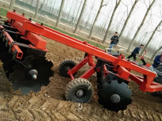 Product Description: Name: Agricultural Equipment 3 Point Mounted Disc Harrow for Tractor Disc Harrow 1BZ series hydraulic offset heavy duty disc harrow has the high working efficiency , strong capability into the soil, and afterplough loosen soil. This harrow can highly adapt to the sticky heavy soil, uncultivated field and those plots of many weeds. It ismade of square tubes welded together which ensures simple structure and good rigidity. The harrow is also equipped with hydrauliclifting rubber wheels for convenient transportation and small turning radius, thus the production efficiency and lifetime of theharrow is dramatically improved. Main Feature 1)Steel selection of China's best Angang and Lingyuan steel, good quality is guaranteed. 2)Heat treatment process, strict control of temperature and time, high hardness and good toughness of disc blade. 3)Automatic spray equipment, disk surface smooth color uniform beautiful.