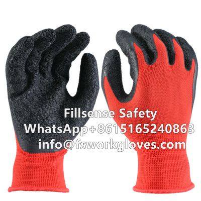 13Gauge Polyester Liner Latex Crinkle Palm Coated Gloves PLCP-01