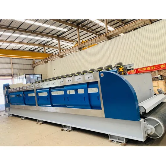 The controlling system of the machine adopts PLC terminal controlling , and sets the parameter by the LCD touch - screen as the man - machine interface . During running , this equipment has designed The indicator of failure and the alarm system of abrasive raw consumption . This machine is suitable for grinding and polishing large plate of marble or granite . The conveying beer advancing speed and the cross beam moving speed are controlled by transducers . The pressure of disc and the grinding width can be adjustable freely within the setting area . The machine can automatically identify the shape of plates . Every disc (grinder ) can automatically life up and down according to the identified shape and track records the grinding of plates at the same time . This Model can choose six claws flicked grinder or marble disc . The whole machine are produced by standardized production .It's performance reaches the domestic advanced level .