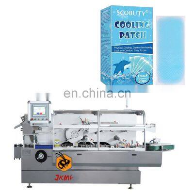 Automatic high speed 125 carton /min horizontal cooling gel patch cartoning machine for pharma Products DescriptionJKMF automatic cartoning machine can achieve full automatic products conveying & feeding, flat carton feeding, carton opening, products pushing, carton folding, carton closing, finished carton package discharging.Machine InformationAutomatic Box Cartoning Machine is a hot sale product developed and manufactured by our company. It is applied to a variety of foods, toys, cosmetics, electronics and daily necessities. Box packing machineJK-Box sizeL:65~350 mmW:30~350 mmH:15~180 mmWrapping speed40~70 box/minGas source0.5~0.8 MpaMachine weight1300KGMachine power220V, 50HZLarge capacity storage box rackWith the long boxes' feeding shelf design, you can place up to 2000 pcs boxes, the machine will alarm and stop automatically whenthe boxes are going to running out.Sensor Identify the product The box storage shelf will stop to feed boxes once there is no products get detected on the conveyor, which will prevent from the box wasting.Automatic feeding device Pneumatic manipulator can fill materials accurately and at a high speed.Adjustable sealing device With the convenient adjustment design, you can easily to complete the adjustment for the different sizes boxes in 1 min.Why Choose UsJIKE BEE MACHINERY has a professional team to provide customers with various packaging solutions. Fully understanding the needs of customers,engineers design the most suitable solution. We have our own processing and assembly workshop and quality inspection and debugging process to ensure the quality of the machine. After acceptance by the customer, they are packed in international standard wooden cases and shipped.Our technical team has carefully filmed more than 100 installation and commissioning videos of various accessories and complete machines, providing video training guarantee services for the equipment permanently.We will package the machine's instruction manual and a USB flash drive with machine operation videos together with the machine.Ensure that you can use the machine as soon as you receive it. If you have something you don't understand, our after-sales team will also help you answer in time.We package and ship the machines in accordance with export requirements.1.Bottom fixed, avoiding shaking and damaging.2.Wrap whole machine in transparent film.3.Packed by fumigated wooden case, meeting export standard.Company ProfileFoshan Jike Bee Automation Equipment Co., Ltd. is a manufacturer of automatic packaging equipment.We are a production-oriented enterprises focused on product innovation, factory direct sales and perfect after-sales service in one.The automatic packaging equipment for granule, powder, liquid and sauce produced by the Jason company is at the advanced level of the industry,it can be customized production automatic material packaging line for all kinds of products .Mainly applicable to: food, hardware, drugs, daily chemicals, pesticides, fruits and vegetables, cosmetics, other industries.The company has its own patent and product technical certification, which can bring customers high quality equipment and worthy of customer trust.Customer PhotosOur customers have covered more than 80 countries around the world.And give us unanimous praise.CertificationsFAQQ1:Do you have manual or operation video for us to know more about the machine? Yes, not only manual or operation video, 3D drawing also available to make as per your design,also the video we can make of testing the material from our packaging machine if your packing goods easier for us to find from our local market. Q2:How can I trust you for the first time business ?Please note our above business license and certificate. And if you don't trust us, then we can use Alibaba trade assurance service, guarantee your money, and guarantee your machine's on-time delivery and machine quality.Q3:Is engineer available to serve oversea?Yes, but the travel fee is paid by you. So actually to save your cost, we will send you a video of full details machine installation and assist you till the end.Q4:How can we make sure about the machine quality after we put the order?Before delivery, we will send you the pictures and videos for you to check the quality, and also you can arrange for quality checking by yourself or by your contacts in China.Q5:Will you provides the door to door service?Yes. Please offer us your final destination, we will check with our agent to see if it available, and most of the area is ok for us to clearing and sending in your countries.