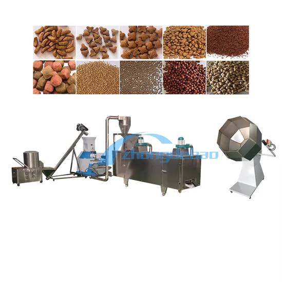 High Quality Puffed Dry Pet Food Extruder Equipment Dog Cat Fish Bird Feed Pellet Processing Lines are used for processing for dogs and cats (pet food), birds, sinking and floating aquatic feeds for fish. Which is a high and new technical program to catch the developing pet food market. Pet food lines mainly use maize, fish powder, meat powder, and some food additive as the main raw material, through mixing, extruding, roasting, and flavoring to get the final puffed pet food. This line is fully automatic, high capacity, and with different shapes. It can produce such as cat food, dog food, fish food, bird food, and so on.