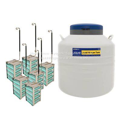 The liquid nitrogen tank used in Tianchi KGSQ laboratory is made of high-strength aluminum alloy. It has double inner and outer vacuum tanks. The inner and outer tanks are made of the same material and are relatively lightweight. The inner and outer tanks are wrapped with insulating and adsorbent materials to provide good thermal insulation. , large diameter, easy to operate, equipped with double handles for easy indoor movement, and can also be used with a five-wheel cart for more flexible movement. Suitable for cryopreservation of cells, tissues, embryos, vaccines, etc.