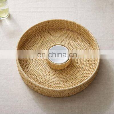 Product Description100% Eco-friendly Rattan Chip & Dip Platter woven serving tray, Wicker Fruit tray Wholesale HandwovenThe rattan tray, which is suitable for decorative purposes, is suitable for use as a tea tray, a serving tray such as a coffee tray, a presentation tray such as a ring tray, and a decorative candle tray.This beautiful tray is great for serving breakfast, dinner, fruit, or other small meals. It has a simple design that should go well with most home decoration styles and is made from eco friendly material. Hand-woven by local craftsmen, suitable for use in all living spaces, is durable and environmentally friendly. – It completes the elegance in presentations and is used to carry our treats.Plant Fiber TypeRattanTypeStorage TraysApplicable SpaceBathroom, Living Room, KitchenProductFood containerShapeRoundNo. of TiersSingleCommercial BuyerRestaurants, Food & Beverage Stores, Super Markets, Hotels, Gifts StoresFunctional designMultifunctionRelated ProductRecommended By SellerMain MaterialMain MarketsPacking & DeliveryOur Selling PointsCompany Profile