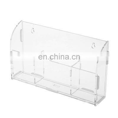 PRODUCT DESCRIPTIONClear Acrylic Remote Control Storage Box Mobile Phone HolderSpecificationsMaterial Acrylic ColorClear or CustomizeThickness3mm or CustomizedSize247W x 143H x 50Dmm or CustomizedSample Cost Depends: 3 times as quotationSample Time 3-7 working days Payment30% deposit and balance before shipmentShipmentBy express, air or sea DETAILED IMAGESRECOMMENDED FOR YOUCLICK HERE TO ORDEROUR FACTORYPACKAGING PEOCESSABOUT US1. Are you a trading company or a manufacturer? We are a manufacturer. We warmly welcome our customer to come and visit us.2. Do you have any certificates? Yes, ISO9001- Quality Management System. 3. Do you support OEM ?Yes, we do both OEM and ODM.4. What warranty do I have?Products will be 100% inspected before shipment.Any defectiveness will be replaced or compensated.5. How long is your delivery time?For mold: 30daysFor order: 20-30 days depends.6. Is sample available? How long is the sample time? Yes, sample is available & free.Time: 1 days as soon as mold is confirmed. 7. What is your payment term?Mold: 50% down payment and balanced against samples confirmed. Order: 30% down payment and balanced before shipment.8. What payment methods do you accept? We accept TT, PayPal, Western Union, LC, e-Checking, Credit Card.9. What logistics service do you offer? We are offering EXW, CNF, CIF, DDU and DDP, by sea, by air, by sea, or by express.