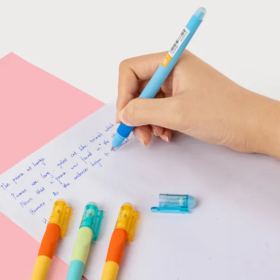 Main Features: Best-selling 0.5mm bullet tip erasable gel pen Ergonomic Grip Comfortable rubber coated barrel Unique Thermo-Sensitive gel ink formula disappears with erasing friction |